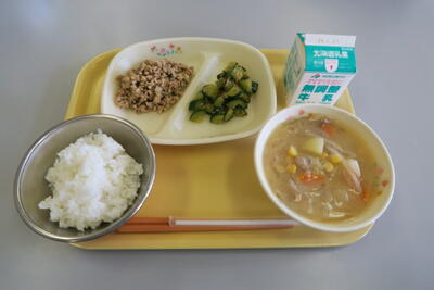 函館市の健康づくりイベント「はこだて市民健幸大学」の中で紹介されている“ベジプラ!楽うまレシピ”を今月の献立に取り入れています。(給食用に少しアレンジしています)