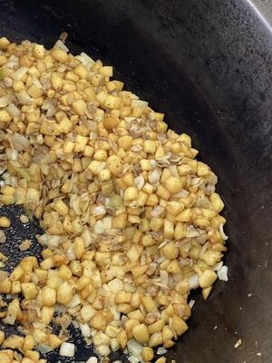 給食でも定番のジャーマンポテトですが、カレー粉でいつもとは少しちがう味に!